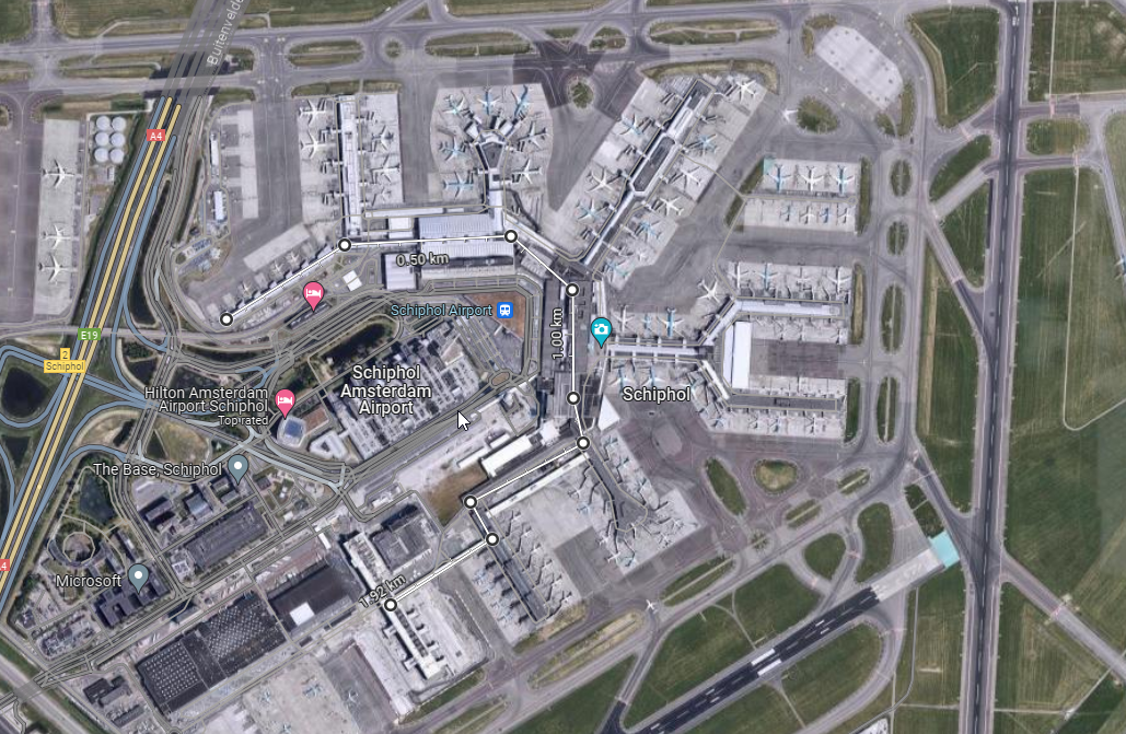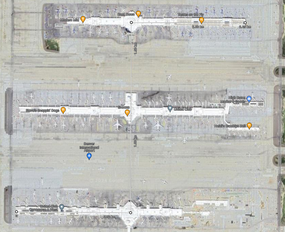 Lotnisko SJC. Tam jest właśnie taki jeden długi/cienki terminal, i nie kojarze na świecie bardziej ekstremalnego przypadku (chętnie się dowiem jeśli są). Odległość MAX wynosi 1470m, a jak to na Amerykańskich lotniskach bywa- nie ma jednego punktu wejściowego a kilka- i ten dystans możesz sobie odpowiednio skrócić wysiadając z TAXI bliżej swojej bramki. Poza tym SJC to prawie 100% O&D- prawie nikt sie tam nie przesiada.