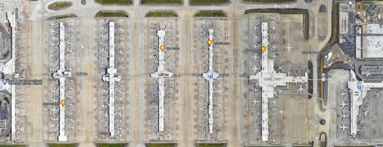 ATL: 2810m, ale pomiędzy terminalami jeździ pełnoprawne metro